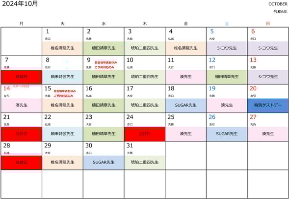 各先生の予約ページをご確認ください。